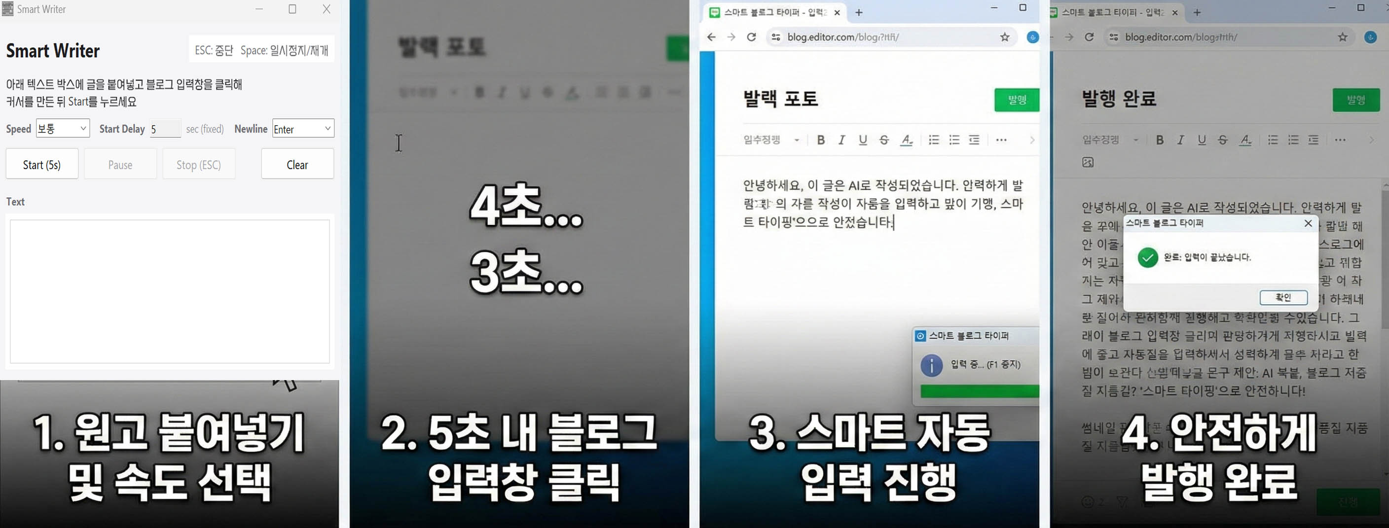 * 3단계 속도프리셋: 블로그 플랫폼의 성격에 따라 '느림', '보통', '빠름' 중 선택할 수 있습니다.